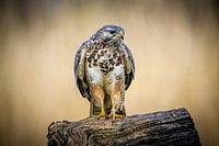 Een buizerd, schuchter rondkijkend