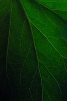 En close up van een blad. Je zier goed alle nerven zitten en de kleur spat er van af. Het is een fijn moody foto door de kleuren met erg veel details.