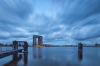 Een dreigende lucht boven de Tasman Toren in Groningen. Na zonsondergang gaan de lampen aan in de Tasman Toren, het moderne en bijzonder vormgegeven flatgebouw aan de rand van de stad Groningen.