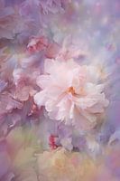 Een zee van zijdeachtige bloemblaadjes zweeft in pasteltinten van roze en lila. De pioenroos staat centraal als een zachte droom, een ode aan elegantie en tijdloze schoonheid.