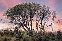 Een duistere boom in een kleurrijke natuurlijke omgeving in de Amsterdamse waterleidingduinen te Zandvoort. De prachtige wolken geven een kleurrijke achtergrond. Een echte wow factor!