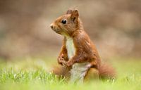 Eekhoorn zitten op zijn achterste in het groene gras.