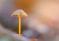 Koop de foto Een eenzame paddenstoel, geel-oranje melkachtige helminth van Horst Husheer op canvas, aluminium dibond, (ingelijste) fotoprint, behang en ArtFrame, op maat geprint in Fine-Art kwaliteit.