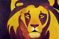 Een kleurrijk digitaal schilderij van een elegante leeuw in de stijl van Gustav Klimt. Dit werk is geinspireerd door de vormen en het kleurenpallet van "De Kus". Het werk geeft een warme en klassieke uitstraling van uw interieur!