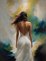 Ontdek het mysterie en de betovering in dit prachtige schilderij dat een vrouw in al haar gracieuze eenvoud vastlegt. In dit digitale meesterwerk, gecreëerd met de rijke textuur van olieverf en een in pasto techniek, ziet u een vrouw van achteren, haar elegante jurk schitterend in een spel van felle kleuren, en haar haren wapperend in de wind. Het kleurrijke spektakel waarin diverse tinten harmonieus samensmelten, geeft het schilderij een bijna magische uitstraling. Elke kleur, zorgvuldig gekozen en perfect gemengd, draagt bij aan het mysterie dat dit kunstwerk uitstraalt. Laat uzelf meevoeren door de levendige tinten en de serene schoonheid van dit minimalistische portret. Een waar juweel voor iemand die houdt van moderne interpretaties en klassieke verfijning. Mis deze kans niet om dit bijzondere schilderij aan uw collectie toe te voegen!