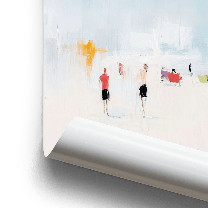 Een fijne dag aan het strand. Een modern en abstract strandlandschap in pastelkleuren. Een bijzondere blikvanger voor je interieur. Hiermee houd je het zomer en vakantiegevoel vast!