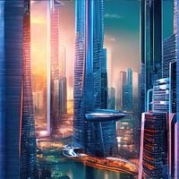 Koop dit digital art kunstwerk Een futuristisch kleurrijk stadsgezicht - 15 van Leo Luijten als reproductie op canvas, aluminium dibond, (ingelijste) fotoprint, behang en ArtFrame, op maat geprint in Fine-Art kwaliteit.