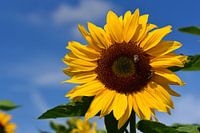 Voor een blauwe hemel bloeit een gele zonnebloem...