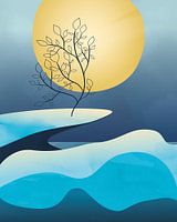 Als u meer details van deze illustratie wilt zien, bezoek dan mijn website waar u verschillende close-up-weergaven kunt vinden: https://www.tmu-creativeworks.nl/portfolio/abstract-oceaan-met-een-boom-op-een-klif/