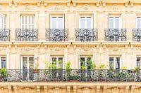 Een prachtige gevel van een grote woning in Parijs, Frankrijk. Parijs kent prachtige gebouwen met prachtige architectuur en vrijwel in elke straat kan je heel mooie gevelstenen en huizen bekijken.