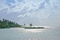 Een heerlijke ochtend op de Malediven in het Holiday Inn resort op het eiland Kandooma Fushi. Koffie drinken op het dek van onze overwatervilla en kijken naar het begin van weer een prachtige dag.