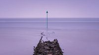 Een golfbreker gefotografeerd tijdens eb, een uur voor zonsopkomst, op het Nederlandse Waddeneiland Vlieland in de Waddenzee, in het noorden van Nederland.