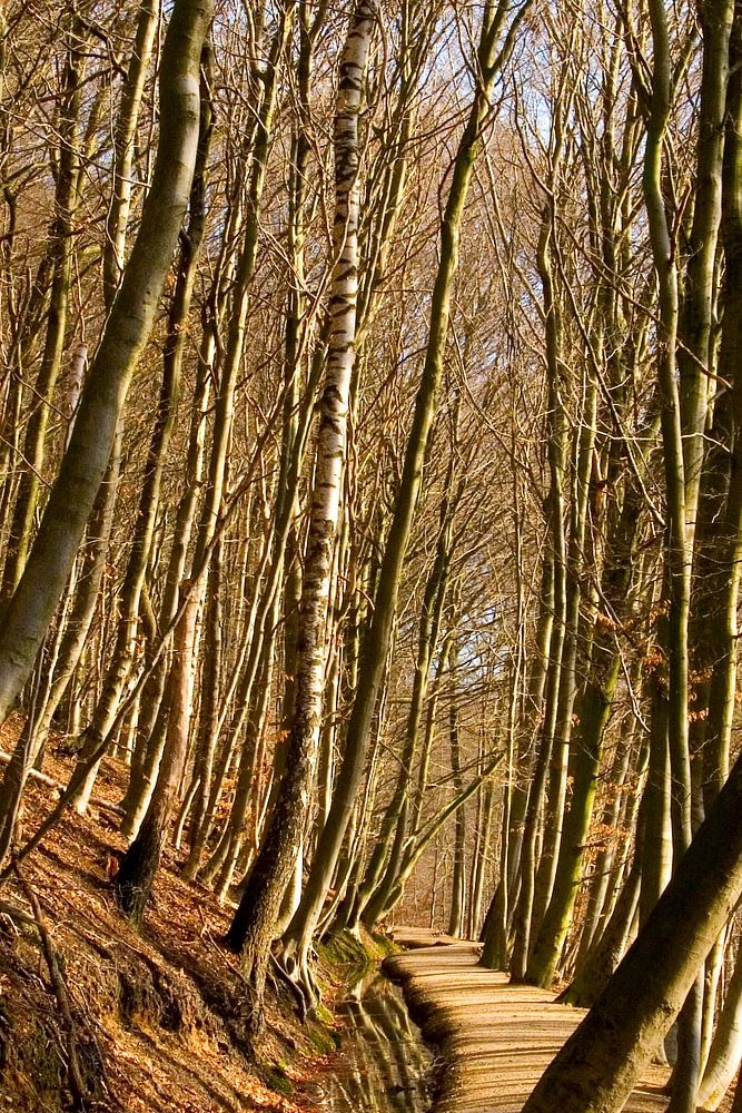 Bos in de herfst met een slingerpad langs het beekje. Een avontuurlijke wandelroute voor het oog.