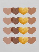 Speciaal voor moederdag is dit digitaal kunstwerk van hartjes in aardse tinten. Met 1 gouden hart speciaal voor jouw lieve moeder, of voor jezelf natuurlijk :)
