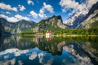 Beieren, Königssee, Hemelwitblauw, Meer, St. Bartholomä , Berchtesgaden, Schönau, Kerk, Landschap, Watzmann, Bergen