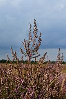 Ik heb deze close-up van heide gemaakt op Cyriassische veld bij Harderwijk op de Veluwe. Voor deze foto heb ik gekozen voor een laag standpunt zodat een deel van een heidetak tegen de wolkenlucht uitkwam. De wolkenlucht lijkt donkerder doordat de heidestruik in het zonlicht stond. Zoals je kan zien was deze heidestruik bijna volledig…