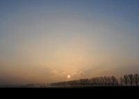 Zonsopkomst heel vroeg op een koude ochtend in de winter vlakbij de Biesbosch in de buurt van Dordrecht.