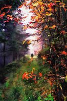 An Autumn Walk is een beeld gemaakt van een oude foto van mij die een van mijn vroege kunstfoto's was, lang voor de digitale camera's. We zien een man lopen over een landweg tussen lanen van bomen die veranderen met het seizoen nu we de herfst ingaan. Het zonlicht creëert een uitnodigend licht om naar toe te lopen. Ik heb dit beeld altijd betoverend gevonden omdat het me doet denken aan wandelen naar het licht in spirituele zin.