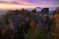 Koop dit landschapskunstwerk Een herfstzonsopgang in het Elbezandsteengebergte van Daniel Gastager op canvas, aluminium dibond, (ingelijste) fotoprint, behang en ArtFrame, op maat geprint in Fine-Art kwaliteit.