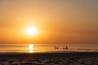 De zon zakt in de zee als een gouden bal. Golven kabbelen sloom tussen een paar paalhoofden door. Je voelt nog de warmte van deze hete zomerdag die nu bijna ten einde is.