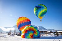 Tijdens de Inzeller Ballonwoche in Inzell, Duitsland zijn luchtballonnen te zien boven het besneeuwde landschap. Het festival wordt elk jaar georganiseerd in de laatste week van januari en trekt ongeveer 15 tot 20 Nederlandse ballonteams die samen gaan varen vanuit het Beierse dorp.