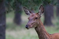 Een vrouwelijk edelhert (hinde) is altijd op haar hoede en alert op haar omgeving.