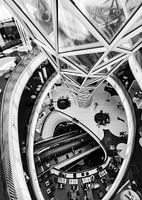 Een zwart wit foto om je eigen fantasie te laten spreken. Een hongerig gezicht; ogen, een mond en de tong (roltrap) die de mensen op eet.