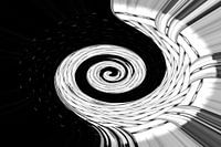 Digitale fotokunst. Het netwerk verlicht het donker spiraalvormig.