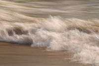 Een inkomende golf vlak voor dat deze breekt op het strand. Door gebruik te maken van een lange sluitertijd komt de dynamiek van het bewegende water goed tot uiting.