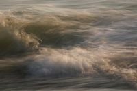 Een inkomende golf vlak voor dat deze breekt op het strand. Door gebruik te maken van een lange sluitertijd komt de dynamiek van het bewegende water goed tot uiting.