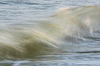 Een inkomende golf vlak voor dat deze breekt op het strand. Door gebruik te maken van een lange sluitertijd komt de dynamiek van het bewegende water goed tot uiting.