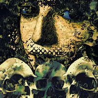 Koop dit portret Een jonge dame en de schedels, Halloween van Helga Blanke op canvas, aluminium dibond, (ingelijste) fotoprint, behang en ArtFrame, op maat geprint in Fine-Art kwaliteit.