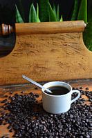 Koop de foto Een kop koffie op een tafel van Claude Laprise als print op canvas, aluminium dibond, (ingelijste) fotoprint, behang en ArtFrame. Voor jou op maat geprint in Fine-Art kwaliteit.