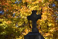 Een kruis op het kerkhof in het najaar, Québec Canada