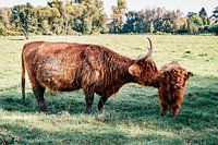 Dompel jezelf onder in de idyllische wereld van de natuur met deze prachtige print van twee majestueuze Highland runderen in een groene weide. De karakteristieke lange, ruige huiden en indrukwekkende horens van de dieren stralen rust en verbondenheid met de natuur uit. De zachte interactie tussen de twee runderen straalt een gevoel van…
