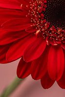 "Een kwart van een rode Gerbera diagonaal" is een macrofoto van een rode Gerbera, waarbij gekozen is voor een totaal andere kadering dan meestal gekozen wordt.