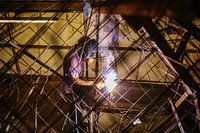 Koop de foto Een lassende corsobouwer van Wilko Visscher op canvas, aluminium dibond, (ingelijste) fotoprint, behang en ArtFrame, op maat geprint in Fine-Art kwaliteit.