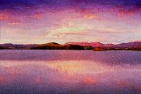 Een simpel, bijna zen-achtig beeld, en wat een mooie kleuren! Een fraaie symmetrie van heuvels, bergen en wolken, spiegelend in het water bij zonsondergang op een windstille avond. Dit digitale schilderij is gebaseerd op een foto, gemaakt eind april bij het IJslandse meer Myvatn. De naam Myvatn betekent letterlijk Muggenmeer, maar de…