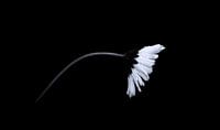 Een zwart-wit foto van een enkel madeliefje van opzij. Op die dag viel er steeds weer motregen, waardoor er kleine waterdruppeltjes op de witte bloem vielen, die er dan uitzagen als kleine pareltjes.
