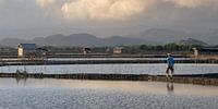 Een vroege ochtend bij de zoutvelden van Sumbawa in Oost Sumbawa. De mensen hier laten de velden onderlopen met zeewater en dan laten ze het opdrogen om zo het zeezout te oogsten. In de nacht slapen deze mensen in het dorp een stukje verderop.
