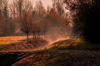 Na een koude nacht kwam het zonnetje door waarbij de grond mist langzaam optrok met de bomen in mooie herfstkleuren