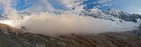 Een mistrol in de Krimmler Kees met de Simonyspitze en Dreiherrnspitze toppen in de Venediger groep