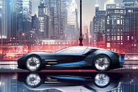 Koop dit digital art kunstwerk Een moderne auto op een stadsstraat met bomen van een boulevard van Ariadna de Raadt-Goldberg als reproductie geprint op canvas, aluminium dibond, (ingelijste) fotoprint, behang en ArtFrame. Voor jou op maat geprint in Fine-Art kwaliteit.