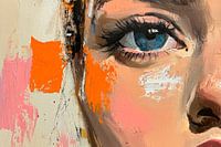 Een fascinerende blik vol diepte en expressiviteit vangt de kijker. De felle kleurspatten rond de ogen veranderen het portret in een spel van emoties en creativiteit. Dit kunstwerk is ideaal voor een moderne woonkamer, waar het gesprekken kan stimuleren en inspiratie kan bieden.