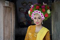 Een mooi Ngarot meisje in de deuropening van Anges van der Logt