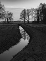 Een mooi beekje langs de weg in Orvelte Drenthe. Wanneer je het mooie dorpje binnen loopt kom je deze mooie Beek tegen met de fantastische weerspiegeling. Is die een mooi beeld voor aan de muur