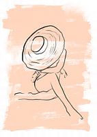 "Een mooie dag lijntekening": Deze prachtige lijntekening brengt een gevoel van warmte en schoonheid over. Het tafereel toont een elegante vrouw met een grote zonnehoed, omringd door zachte aardtinten die het geheel een warme en rustgevende sfeer geven.