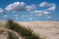 Mensen wandelen in de duinen van Noord Denemarken op een mooie warme en zonnige zomerdag.