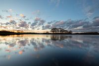 Prachtige luchten met fantastische kleuren deze avond. De bomen en de wolken reflecteren in het water. Je wordt er helemaal in meegetrokken... De foto is genomen in de winter, bij Orvelte (Drenthe, Nederland). Februari 2022.