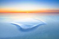 Een mooie zonsondergang boven het IJsselmeer op het strand bij Workum in Friesland. De zandbank on het water geeft een mooie vorm op de voorgrond.